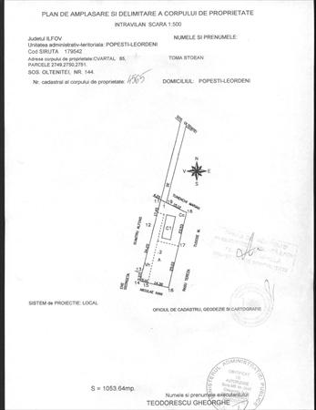 Teren intravilan 1050 mp, apa, gaze, canalizare, electricitate, exista o casa veche demolabila pe teren. Pret negociabil!!