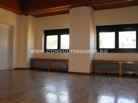 Vila in suprafata de 1.100 mp, D+P+2E, amenajata pentru birouri, disponibil etajul 2 si mansarda, suprafata utila 634 mp. Deschidere: etaj 2 suprafata utila 322 mp, camera - 92 mp, camera - 9.65 mp, camera - 25 mp, camera - 25 mp, hol - 42 mp, bucatarie - 15 mp, terase 20 mp, grupuri sanitare - 22 mp, holuri si dependinte - 26 mp; mansarda - in suprafata de 312 mp, camera - 72 mp, camera - 62 mp, camera - 28 mp, hol - 25 mp, terasa 86 mp, hol si dependinte - 38 mp. Imbunatatiri : marmura, parchet din lemn masiv, gresie, faianta, tamplarie PVC cu geam termopan, obiecte sanitare noi, usi din lemn masiv. Dotari : incalzire cu centrala proprie a imobilului si radiatoare din otel, aer conditionat in fiecare camera, usa metalica, interfon, internet, rulouri exterioare activate electric, bucatarie mobilata si utilata, lift cu acces cartela, garaj subteran pentru doua masini cu usi actionate cu teleomanda. La subsol 3 incaperi pentru depozitare in suprafata de 200 mp.